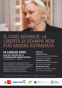 Se l’informazione è uno dei mattoni della democrazia, è invece indispensabile che del “caso Assange” si continui a parlare. Per questa ragione, l’Atlante delle Guerre e dei Conflitti del Mondo e Unimondo, in collaborazione con l’Ordine dei Giornalisti del Trentino Alto Adige, del Forum Trentino per la pace e i Diritti Umani e il Centro per la Cooperazione Internazionale hanno deciso di organizzare un incontro pubblico il prossimo 14 luglio, alle 18.00, nelle Sale del centro per la Cooperazione Internazionale, in via San Marco, 1 a Trento.