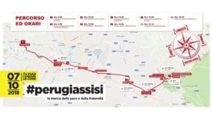 Nell’immagine di copertina la mappa della Marcia mondiale. Sopra, l’itinerario della Perugia Assisi