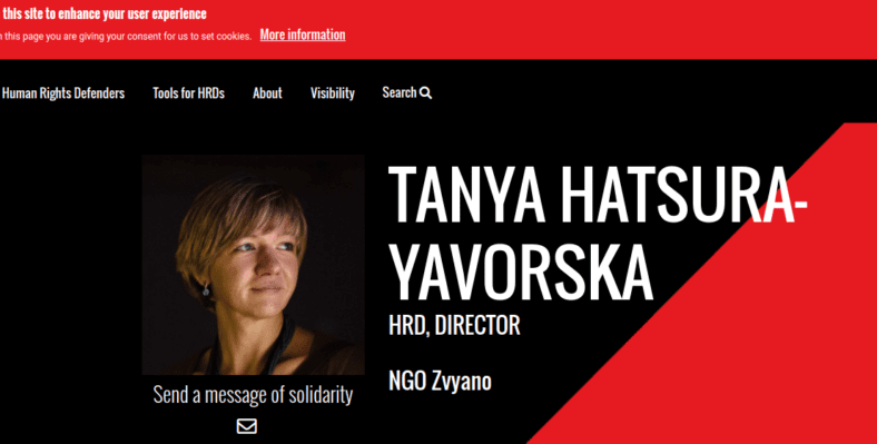 In copertina un’immagine di Tanya dal sito di FrontLineDefenders
