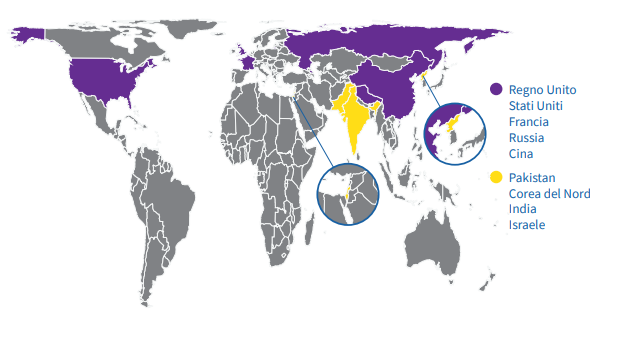 In copertina: stima degli arsenali delle testate nucleari nel mondo, 2021 (immagine tratta dal volume)