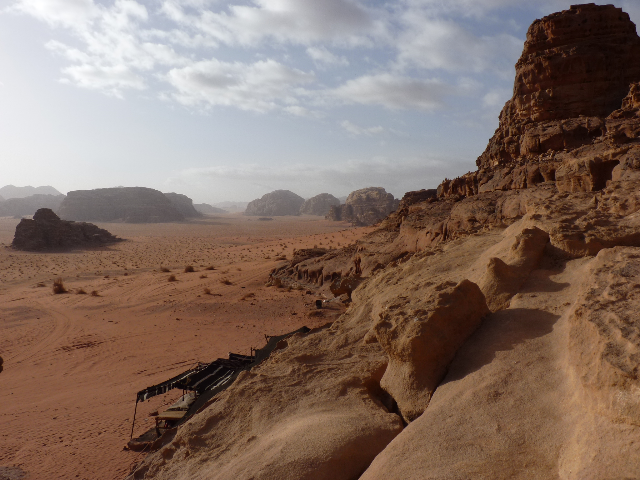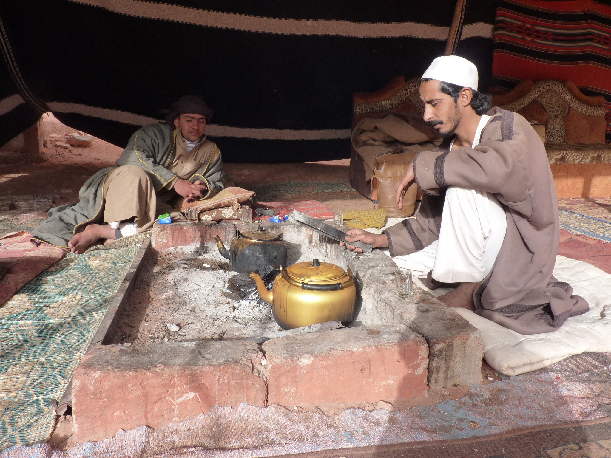 Nel Wadi Rum, il deserto montagnoso e di sabbia rossa del Sud del Paese, vivono ad oggi circa 40 famiglie. Altre 2500 persone abitano nel villaggio di Rum. Ed è qui che il turista incontra la tradizione. Grazie alla tecnologia, il visitatore può prenotare la sua notte nella tenda nel deserto tramite internet, ‘whatsappare’ con il proprietario dell’insolito campeggio, cenare con la famiglia beduina, bere con loro il tipico tè aromatizzato con salvia e cardamomo e il giorno dopo, con i fuoristrada, avventurarsi in un tour nel deserto. Il tutto pagando svariate decine di dinari giordani (ovvero decine di euro).