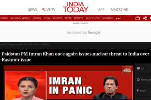 fatto che entrambi i Paesi hanno l’arma nucleare e che se si dovesse arrivare a un ennesimo conflitto tra India e Pakistan il caso sarebbe ben più che solo bilaterale. In contrasto con la tesi del Pakistan, Donald Trump ha invece appena rincuorato Modi sul fatto che il Kashmir è una questione bilaterale. Musica per le orecchi di Modi e musica per i giornali indiani (vedi immagine sopra) le parole di Imran Khan diventate immediatamente una “minaccia nucleare” del Pakistan all’India. Un caso di isteria nucleare che mira a relegare Islamabad tra i reietti per far dimenticare quel che avviene in Kashmir: repressione durissima del dissenso e avvio – permesso ora dal nuovo status del Kashmir – di una campagna di induizzazione di una regione a maggioranza musulmana poiché la modifica dello status consente ora a chiunque di acquistare terra in Kashmir prendendovi la residenza.