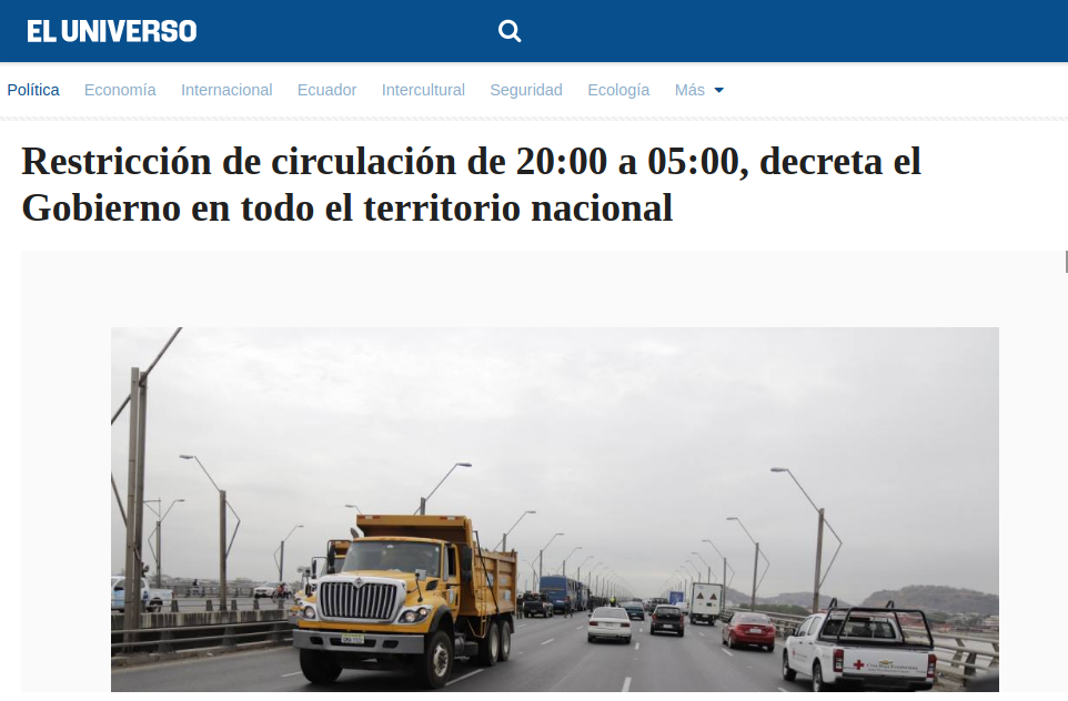 Nell’immagine di copertina la prima pagina di oggi del giornale ecuadoriano El Universo
