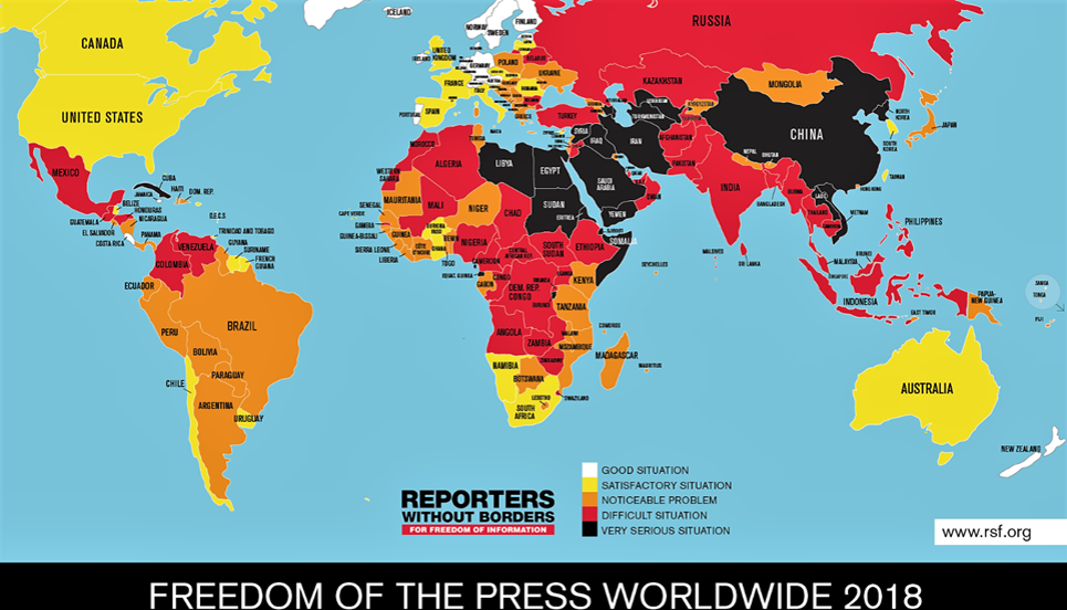 Oggi si celebra la Giornata Mondiale della Libertà di Stampa.Come documenta Reporter Senza Frontiere, la cui missione è proprio quella di monitorare la libertà di stampa, nel solo 2018 ben 23 giornalisti sarebbero stati uccisi mentre stavano svolgendo il loro lavoro, 4 sarebbero invece i civili che. documentando la realtà nella quale si trovavano, hanno trovato la morte così come 2 sarebbero gli assistenti giornalisti assassinati. Non solo, ma a questo bilancio si aggiunge anche quello dei giornalisti che oggi sono incarcerati: 176 giornalisti professionisti, 15 cameraman e fotoreporter mentre 126 sono i cittadini comuni che avrebbero commesso il presunto crimine di aver cooperato con la stampa violando in base alle legislazioni nazionali le regole sulla censura. Da sottolineare è come questi siano solo dati parziali e suscettibili a modifiche solo al rialzo.