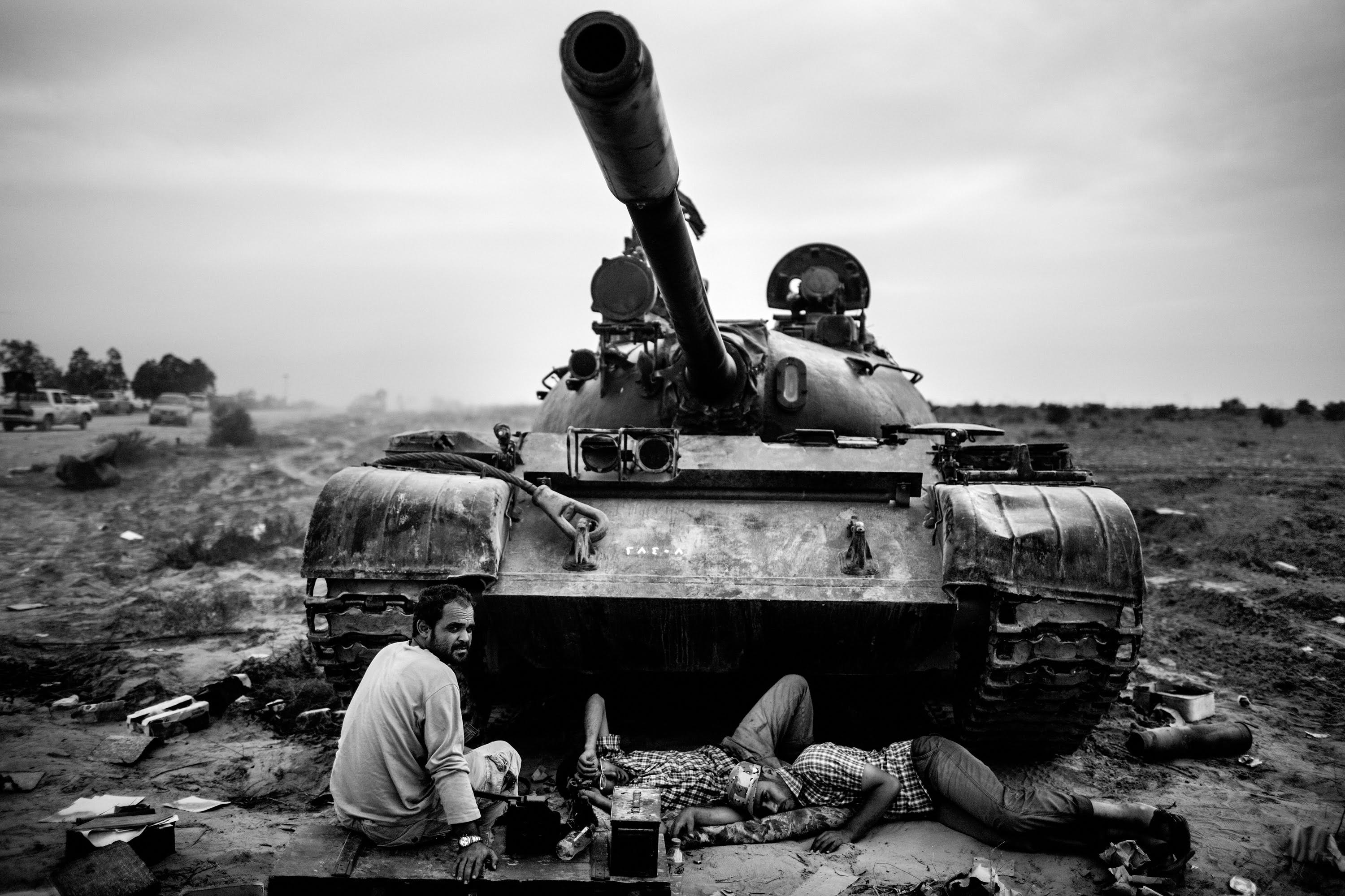 La Libia è un “porto sicuro”? In copertina: Combattenti ribelli libici riposano sotto un carro armato fuori dalle mura della città, Sirte, Ottobre 2011 ©Fabio Bucciarelli