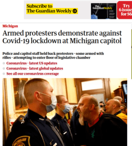accade nello Stato del Michigan dove una governatrice democratica – Gretchen Whitmer – si oppone al “liberi tutti” che piace ai repubblicani e chiesto a gran voce – forse più comprensibilmente – da molti cittadini in difficoltà come ovunque per il lockdown. Ma dalla protesta civile all’assalto armato all’istituzione più importante dello Stato ce ne passa. La cronaca racconta che diverse centinaia di manifestanti, alcuni dei quali armati, si sono radunati giovedi a Lansing, capitale dello Stato del Michigan – riporta il Guardian – mentre i parlamentari discutevano della richiesta del governatore democratico di estendere i suoi poteri di emergenza per combattere il coronavirus.