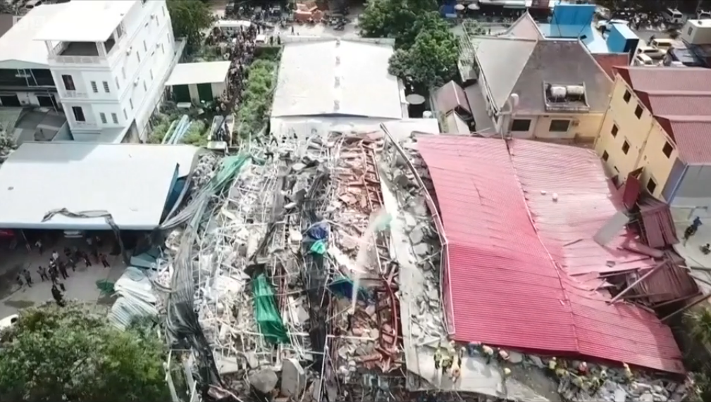 Eppure il collasso di un edificio di sette piani nel centro di Sihanoukville sulla costa, non è una notizia secondaria visto che, non solo il crollo in sé di un edificio in costruzione merita attenzione ma la struttura – ripiegatasi su se stessa prima dell’alba di sabato mattina – si è portata via 18 dei cinquanta operai che vi lavoravano mentre almeno altri 24 sono stato feriti dal crollo ma almeno hanno salvato la pelle. Quattro per ora gli arresti, tra cui il proprietario della società cinese di costruzione. Il numero dei morti però potrebbe salire mentre un migliaio di persone partecipano alle operazione di soccorso per trovare qualcuno magari ancora vivo sotto le macerie. Gli operai dormivano nell’edificio il che già dice molto sulle condizioni in cui si lavora – già denunciate dall’ufficio Onu del lavoro (Ilo)- nel regno-dittatura cambogiano.