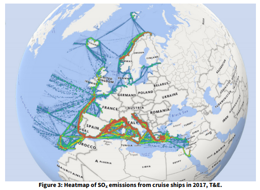 Un rapporto pubblicato da “Transport & Environment”, coalizione europea di associazioni impegnate nella lotta all’inquinamento atmosferico, nel giugno 2019 ha evidenziato che in molte città portuali le navi da crociera sono una causa di emissioni inquinanti, in alcuni casi perfino maggiore del traffico veicolare.