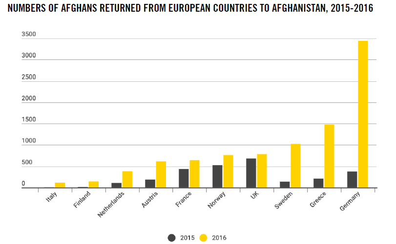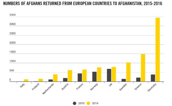 Dal rapporto si evince che i rimpatri forzati hanno riguardato anche minori non accompagnati e minorenni diventati adulti quando sono arrivati in Europa. Diverse persone, inoltre, hanno raccontato di essere state portate in zone dell’Afghanistan in cui non erano mai state. Le storie arrivano dai respinti da Germania, Norvegia, Olanda e Svezia. Secondo dati ufficiali dell’Unione europea, tra il 2015 e il 2016 il numero degli afgani rimpatriati dagli stati membri è quasi triplicato: da 3.290 a 9.460.