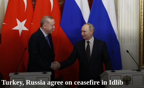 Il cessate il fuoco mediato da Russia e Turchia è entrato in vigore nella provincia siriana nordoccidentale di Idlib a mezzanotte dopo un accordo firmato a Mosca giovedì dal Presidente russo Vladimir Putin e dal suo omologo turco, Recep Tayyip Erdogan. L’Osservatorio siriano per i diritti umani- citato dalla Bbc questa mattina all’alba – ha affermato che una relativa calma è scesa sulla regione.