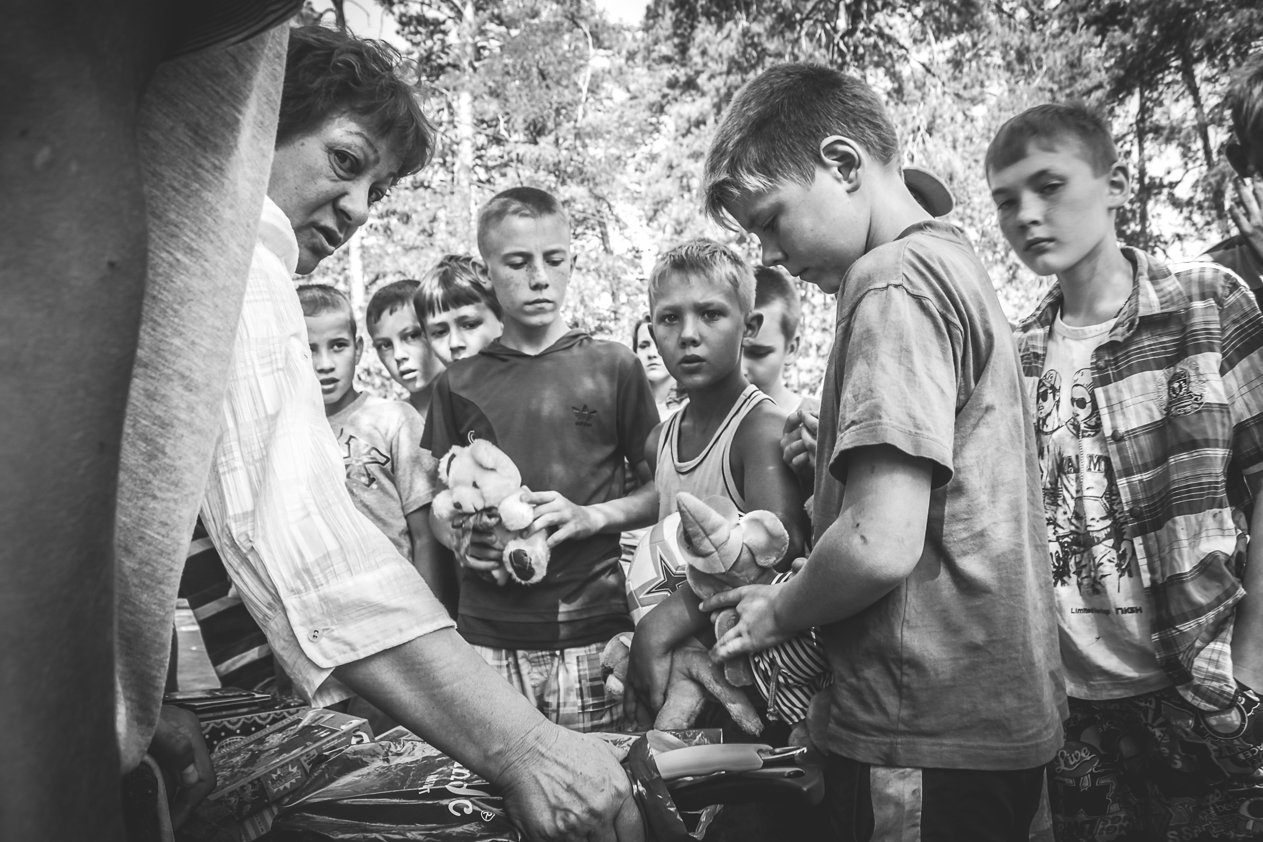 Il fotoreportage nasce dai diari raccolti sul campo nel 2014-2015 durante le proteste, l’accoglienza degli sfollati nella regione di Kiev e un viaggio nel Donbass, realizzato seguendo due volontari della Croce Rossa ucraina.
