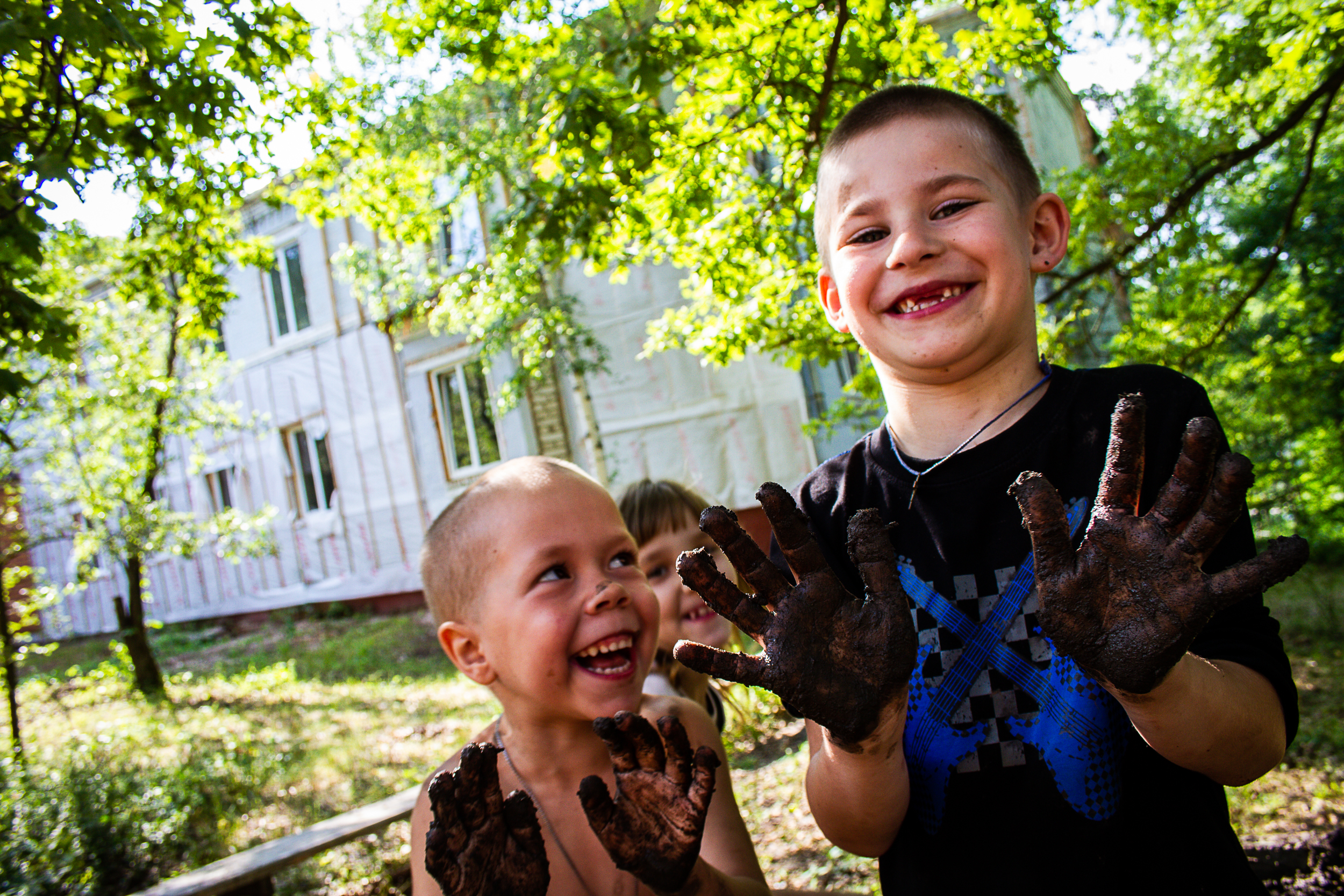 Al quarto piano dell’ospedale militare di Kiev, un soldato biondiccio, infermo, si avventura nel corridoio. L’esplosione di un mortaio gli ha tranciato di netto una gamba, l’altra è scavata fino all’osso, rammendata con infiniti punti, garze e fasce da cui si intravedono ferite ancora fresche. Incontriamo Lilia, moglie di Fedir, soldato invalido: “Mio marito ha 39 anni. A metà marzo è arrivato l’avviso del reclutamento forzato: se ti opponi alla norma rischi dai tre ai cinque anni di carcere. Si è quasi obbligati ad accettare. In aprile Fedir è partito, l’11 luglio è rimasto gravemente ferito. Il battaglione di cui faceva parte è stato circondato dall’artiglieria pesante, i colpi cadevano come grandine; non ha fatto in tempo a raggiungere la trincea, si è riparato sotto un carro armato. Il ragazzo al suo fianco, 19 anni soltanto, è morto fulminato dalle schegge, mentre mio marito ha riportato una gravissima ferita alla pancia; parte dell’intestino è stato asportato, la gamba sinistra è dimezzata, metà guancia schizzata via. Prima dell’operazione Fedir mi ha raccontato delle condizioni terribili in cui vivevano al fronte. Erano costretti a soppesare le porzioni di cibo giornaliero e farle durare almeno quattro giorni. Bevevano per lo più acqua piovana, non avevano tende adeguate per dormire o ripararsi dai temporali. Spero che tutto si risolva presto, abbiamo due bambini di 8 e 3 anni che ci aspettano a casa”. Intravedo corpi sfibrati, distesi, gran parte amputati. Disegni puerili, raffiguranti colombe bianche, arcobaleni, fiori ma anche armi e miliziani ricoprono le pareti bianche. “Eravamo nelle vie di Lugansk quando ci hanno sparato addosso. Colpi di mortaio, missili, proiettili vaganti. Mi hanno colpito alla gamba sinistra… una lesione troppo grave per poter ricucire i tessuti – dichiara Sasha, 29 anni – occorre ammettere però che i separatisti filorussi, quando il personale medico evacuava i feriti dal campo di battaglia, non hanno sparato un colpo”. Sergey ha 20 anni tondi. Lo osservo mentre ondeggia a ritmo di musica rap. Non riesco proprio a immaginarlo vestito in mimetica, con un paio di granate appese al cinturone. Dice di non aver avuto paura mentre combatteva al fronte, eppure le fotografie che getta con noncuranza sul tavolino sembrano dimostrare esattamente il contrario: un giovane smarrito, impacciato, a tratti euforico, che sghignazza con bombe e fucili a portata di mano. Sergey non parla dell’incidente, si limita a mostrarmi profonde cicatrici sulla testa e nel fianco destro del busto, le quali lasciano spazio all’immaginazione, ancor più cruda delle lacerazioni stesse. Cammino sotto il fascio insistente dei lampioni, seguendo i binari della metro, saltando poi a bordo di un taxi scalcinato diretto a Puscha Voolitsa, località marginale in cui quaranta bambini sfollati da Donestk hanno trovato rifugio giorni orsono. Pini, carpini e siepi di pitosforo proteggono metaforicamente infanzie spezzate: “Vivevo con mia nonna ed il mio padrino a Mariupol. Con il motorino avevo l’abitudine di superare i Check Point dei filorussi. Più t’inoltri nelle zone occupate e più vedi bottiglie vuote di vodka e siringhe a terra. I soldati si ubriacano spesso e per gioco picchiano i civili. Ho visto stuprare ragazze e sparare contro quartieri inermi. Non capisco proprio a cosa serve questa guerra. Un pomeriggio ero seduto con mia nonna in cucina; la casa tremava, i proiettili si avvicinavano. Mia nonna mi ha detto tranquillo, chi è destinato a morire d’acqua, non può morire di fame, cosi ho capito che potevo solo attendere il mio destino” racconta Andrei, 14 anni, evacuato dalla Croce Rossa insieme al restante gruppetto che corre, s’agita, gioca a pallone intorno alle panchine di legno. Oltre ai reticolati del parco una colonna di camion verdognoli si dirige verso oriente. A bordo giovani soldati smunti imbracciano il proprio fucile semiautomatico. Chiedo spiegazioni a Masha, fidata accompagnatrice: “Non so, forse tornano dalla guerra, oppure ci stanno andando proprio ora. Le retrovie del fronte non sono poi così lontane. Fa caso alle chiese, sono sempre più affollate. Le persone in Ucraina hanno perso tutto e si aggrappano alla fede, a qualsiasi cosa possa donare sollievo all’anima”.
