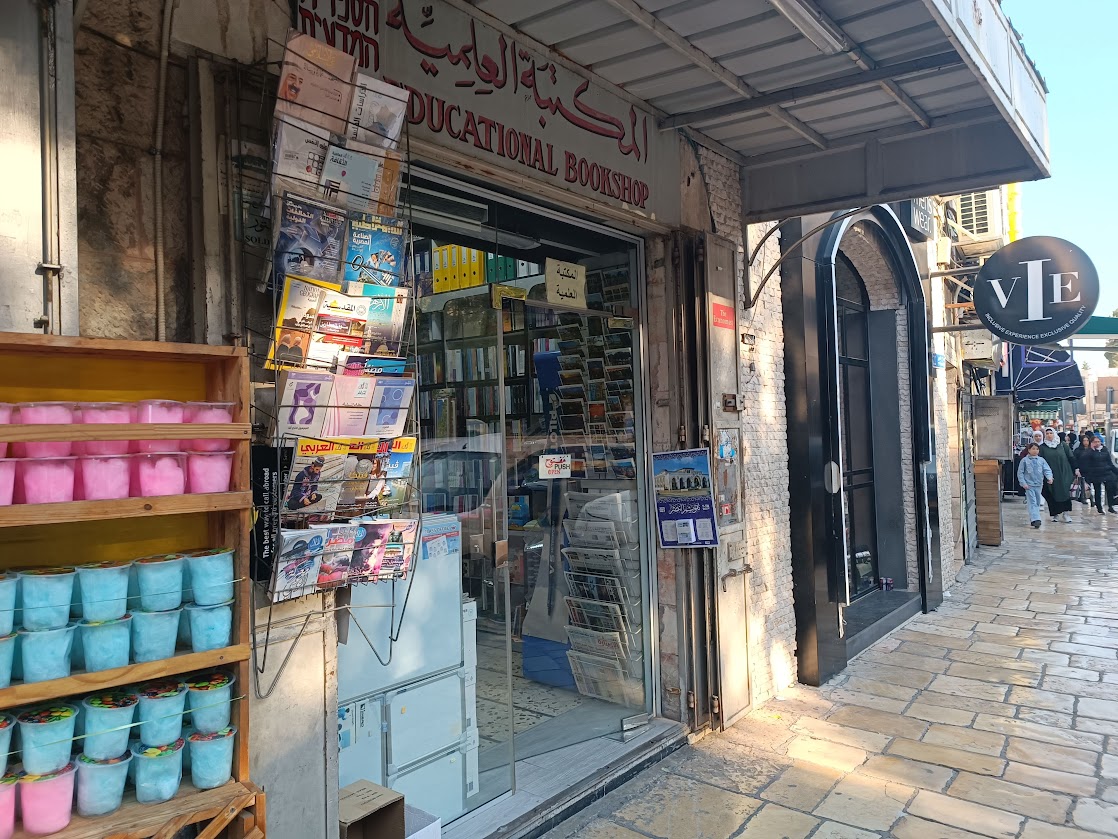 All’Educational Bookshop, il tempo sembra sospeso. Al piano terra, scaffali stipati di volumi raccontano cento anni di storia, lotta e cultura palestinese. Libri in inglese, arabo, francese, tedesco e perfino italiano: archeologia, letteratura, musica, testimonianze, romanzi israeliani. Al piano superiore, silenzio e concentrazione: studenti e lavoratori in smart working cercano una tregua dal rumore esterno. Ma quella tregua, il 9 febbraio, è stata violentemente interrotta.